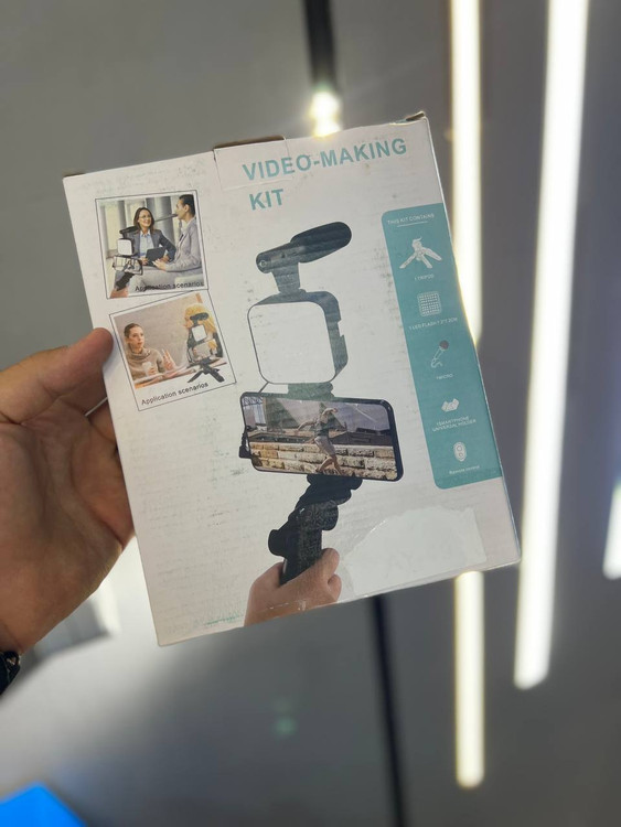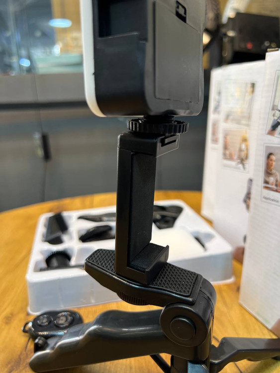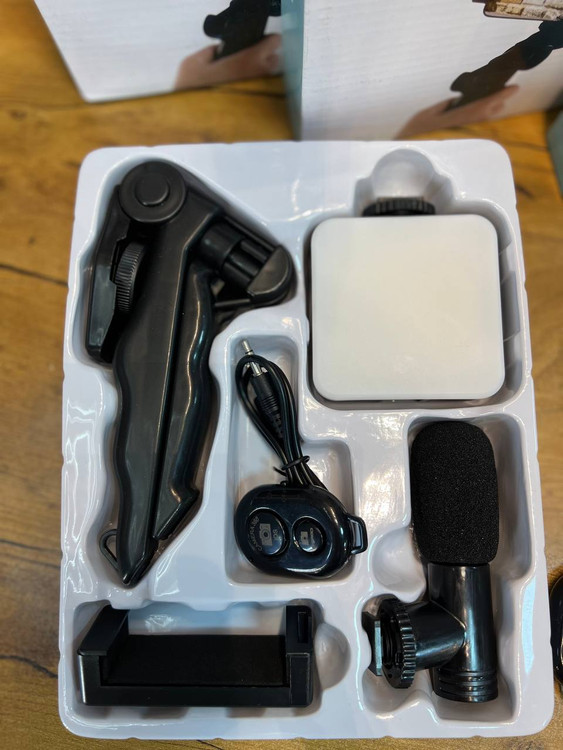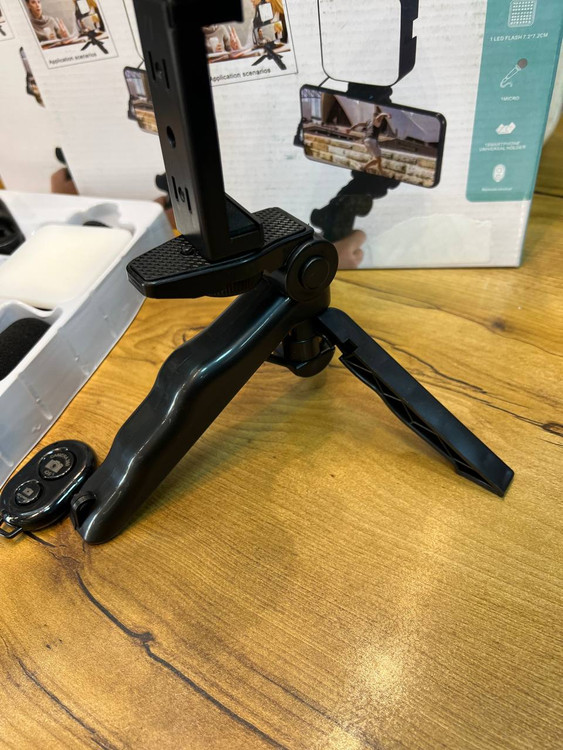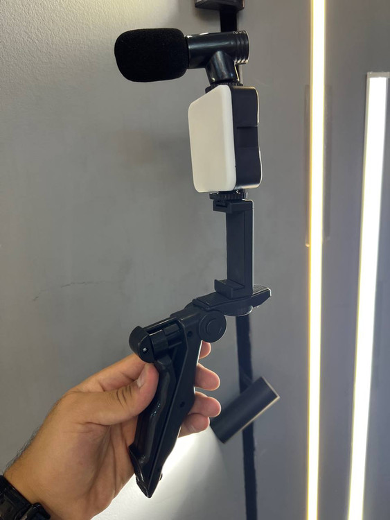 گیمبال به همراه نور و میکروفن و شاتر موبایل و پایه رومیزی