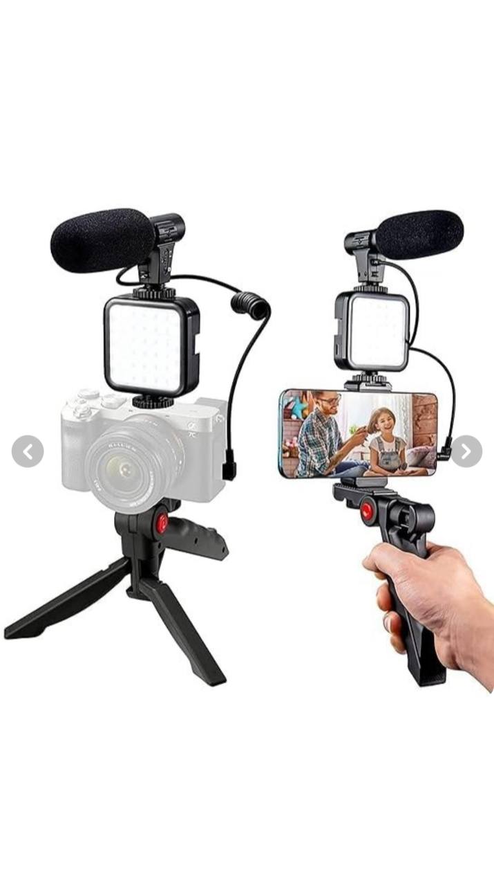 گیمبال به همراه نور و پایه و هولدر برند مطرح AK چرخش ۳۶۰ درجه نور پرتابل ۳۰ وات شاتر عکاسی موبایل بلوتوثی میکروفن سیمی قابل نصب به انواع کوشی ها حالت پایه رومیزی شونده