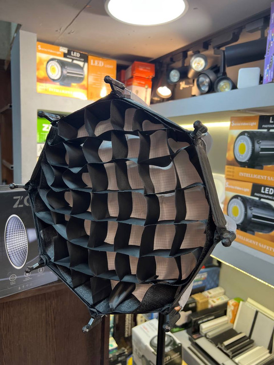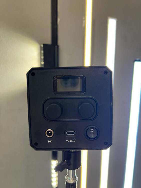 دیفیوز و بال هد و پایه ایستاده و دیمر تنظیم نور و کلوین و دارای صفحه نمایشگر و ...