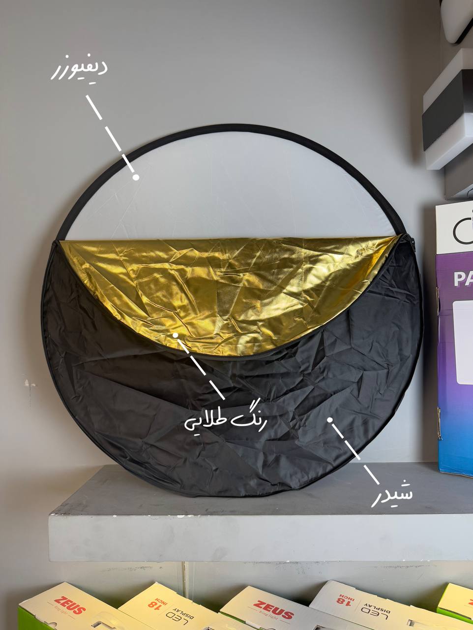 رفلکتور ۵ کاره برای لاین میکاپ و رفع سایه داخل ویدیو های تولید محتوا ۵ حالت شیدر این محصول برای لاین میکاپ و ویدیو های عکاسی مدلینگ و صورت کاربرد زیادی داره