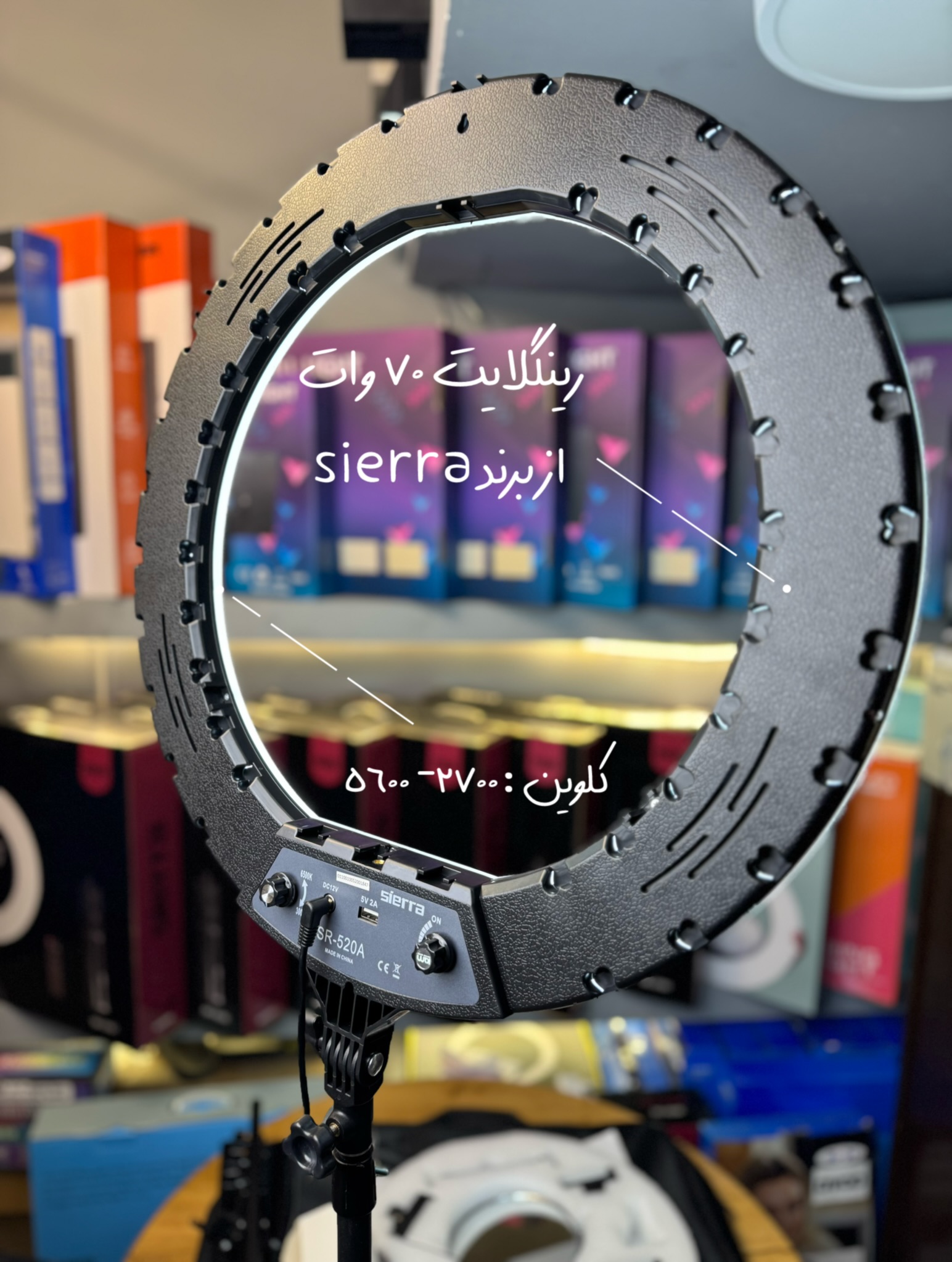 رینگ لایت قطر ۵۵ سانت ۷۰ وات دارای کیف حمل ریموت و کنترل ۳ عدد هولدر موبایل پایه ایستاده آینه میکاپ ۱ سال گارانتی شرکتی
