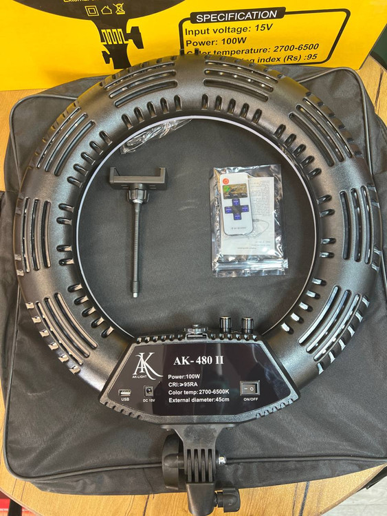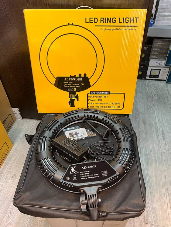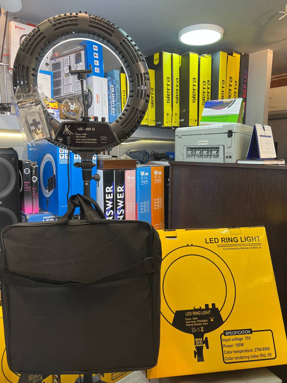 رینگ لایت Ak-480(کیف حمل- پایه ایستاده - ریموت -۱۰۰وات )